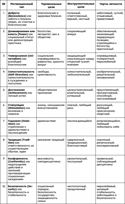 10 типов мотивационных ценностей Ш.Шварца