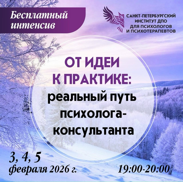 3, 4 и 5 февраля в 19:00 мы проводим бесплатный интенсив «От идеи к практике: реальный путь психолога-консультанта» - три встречи о том, как из мысли «хочу стать психологом» прийти к реальной работе с клиентами.